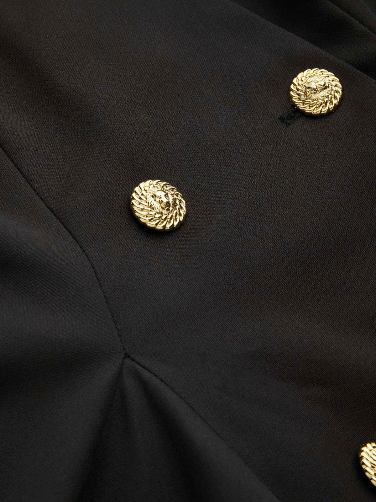 Design: A feminine mini dress featuring a flattering V-neckline, button-down front, and a playful ruffle hem. The clean, solid colour enhances its timeless and flirty appeal.