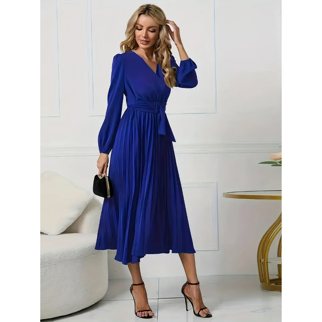 Elevate your wardrobe with the Aika - Pleated Elegance Dress. Designed to exude effortless charm, this stunning piece transitions seamlessly from daytime chic to evening allure.