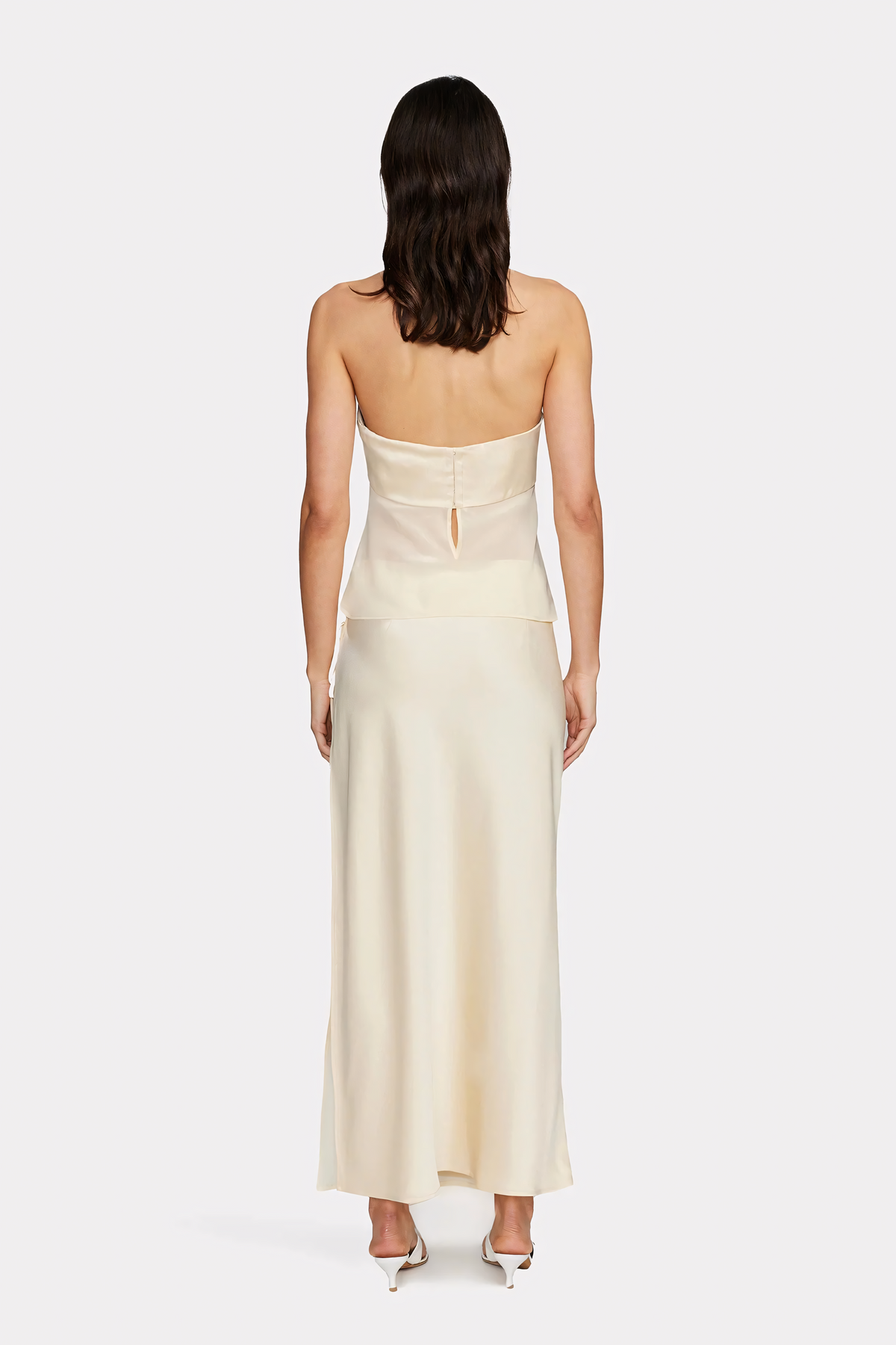 Strapless silhouette: highlights the shoulders and neckline with sleek simplicity.