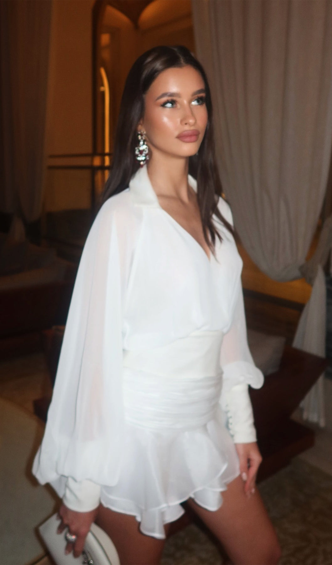 Sheer Lantern Sleeves – Voluminous sleeves crafted from lightweight fabric for a graceful, airy effect.